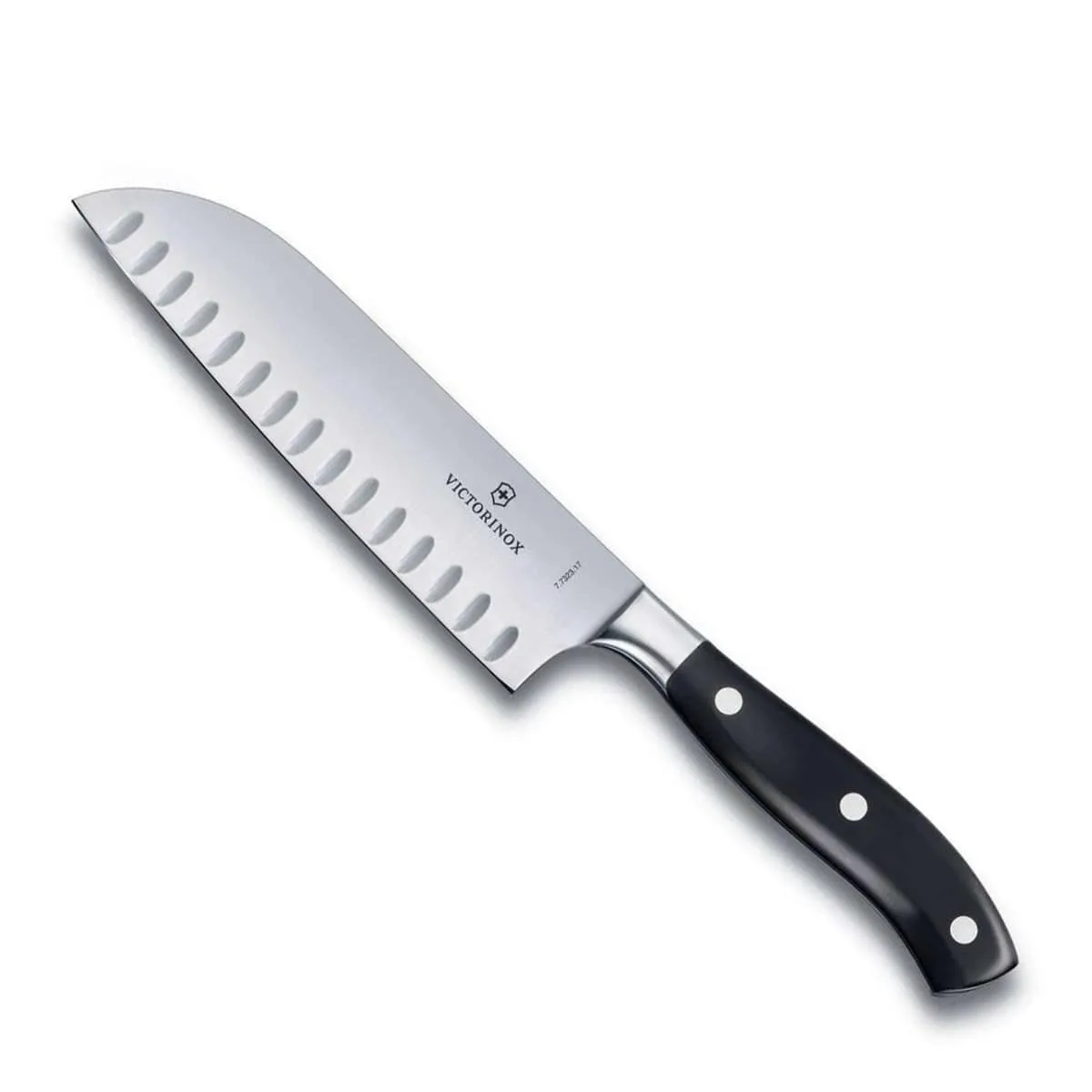 Το μαχαίρι Santoku είναι το μαχαίρι γενικής χρήσης που στα γιαπωνέζικα σημαίνει “τρεις αρετές”, αφού μπορεί να χρησιμοποιηθεί για κρέας, ψάρι, και λαχανικά. Η μύτη του είναι πιο γαμψή από το μαχαίρι σεφ, ενώ το μήκος της λάμας του είναι ιδανικό για το ψιλοκόψιμο ακόμα και στον πάγκο της οικιακής κουζίνας, όπου ο χώρος είναι συνήθως πιο περιορισμένος. Το ελαφρύ του βάρος το κάνει άνετο και ξεκούραστο ακόμα και μετά από πολύωρη χρήση.