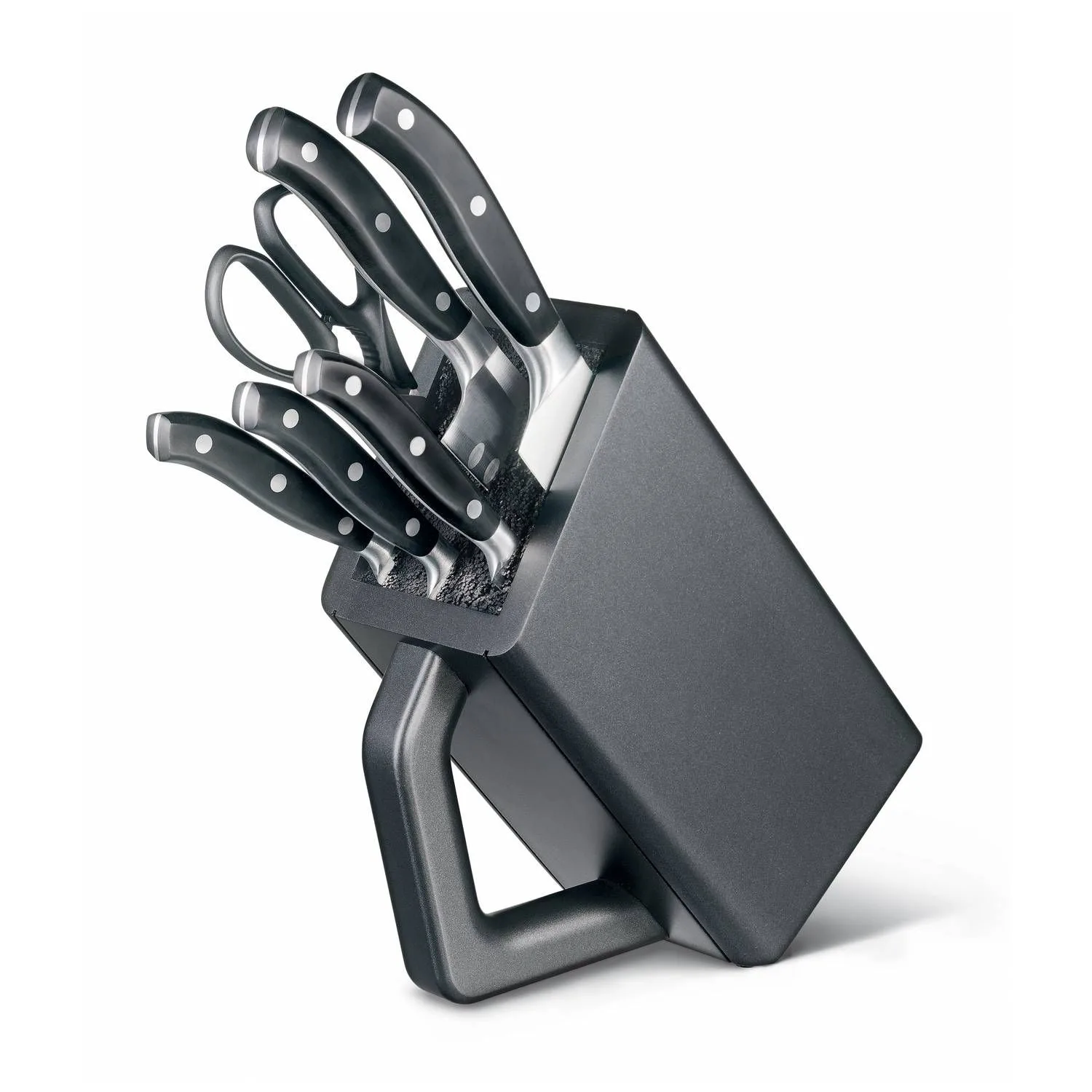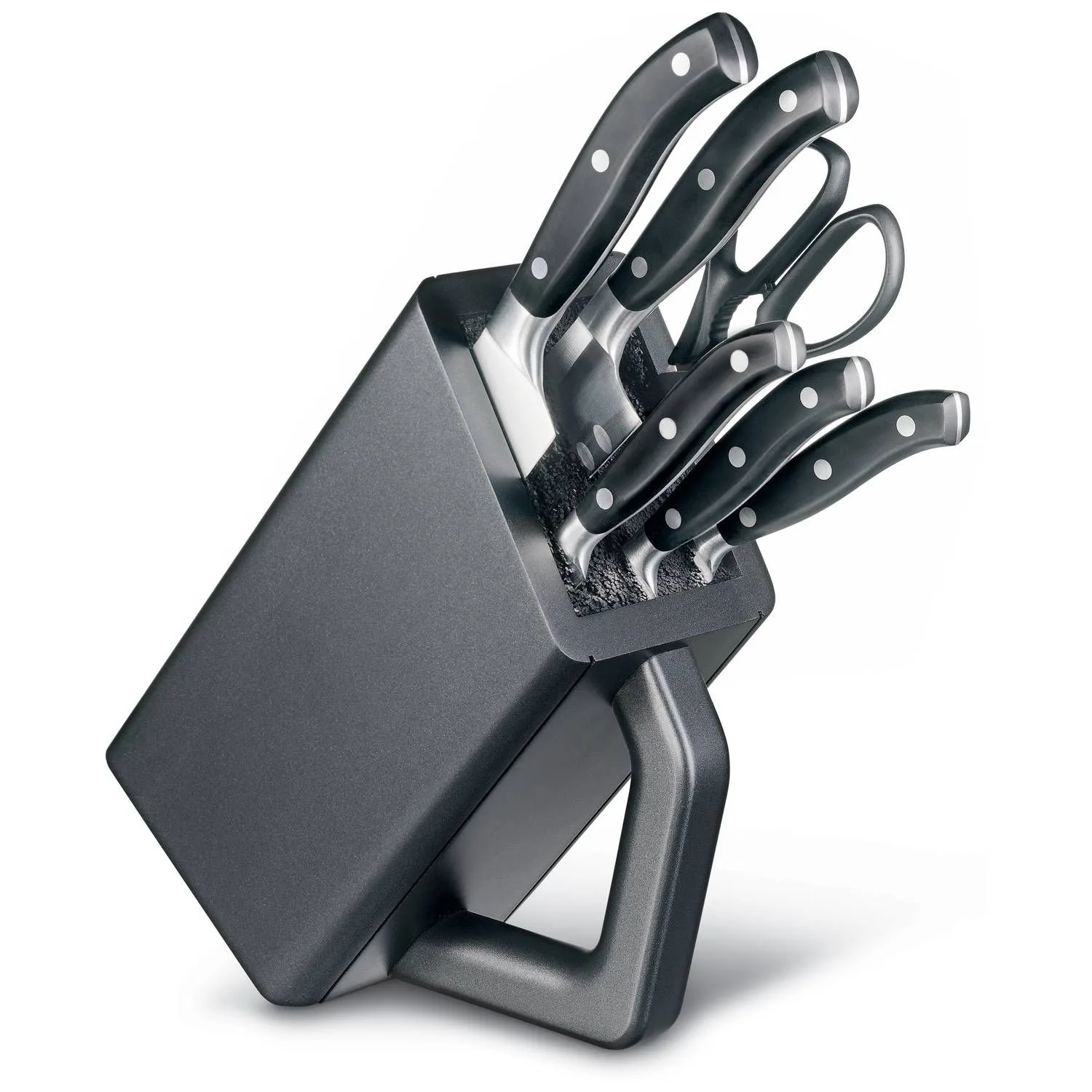 Μοναδική θήκη μαχαιριών από ίνες νάιλον που επιτρέπουν την εύκολη και αβίαστη τοποθέτηση των μαχαιριών. Περιλαμβάνονται τα παρακάτω σφυρήλατα, μονοκόμματα μαχαίρια: